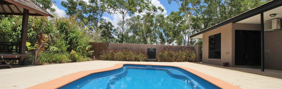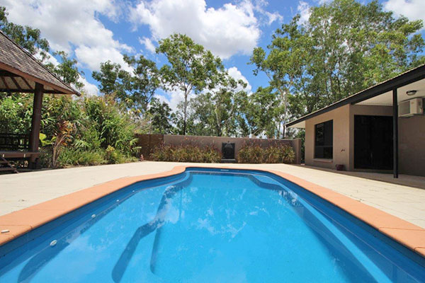Sparkling resort style pool and surrounding area with Bali hut and new pool pump and salt chlorination